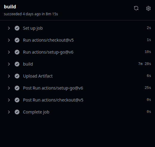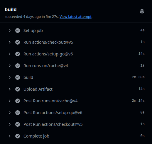 - 本論とは関係ないですが、ビルド結果2でビルド結果1と比較して3倍近く早くなりました。セルフホストでCPU論理コア数が16個あるので、それが効いています。